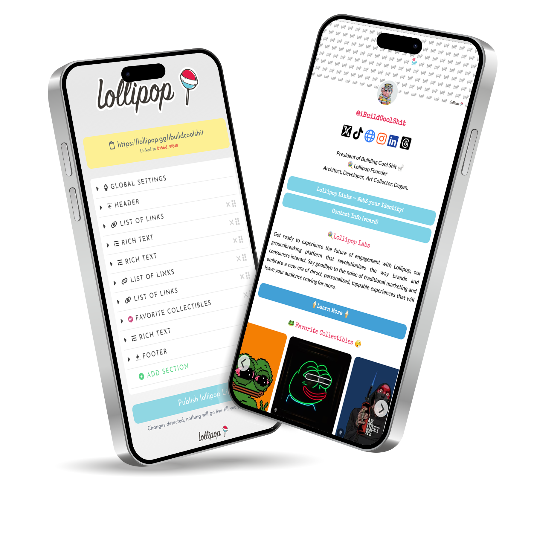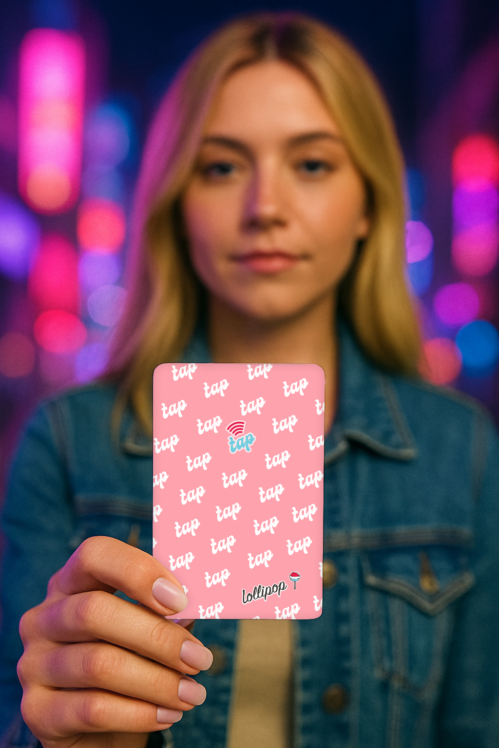 One tap from your Lollipop card and they’ve got your entire bio link; socials, shop, whatever, locked in before they even forget your name.